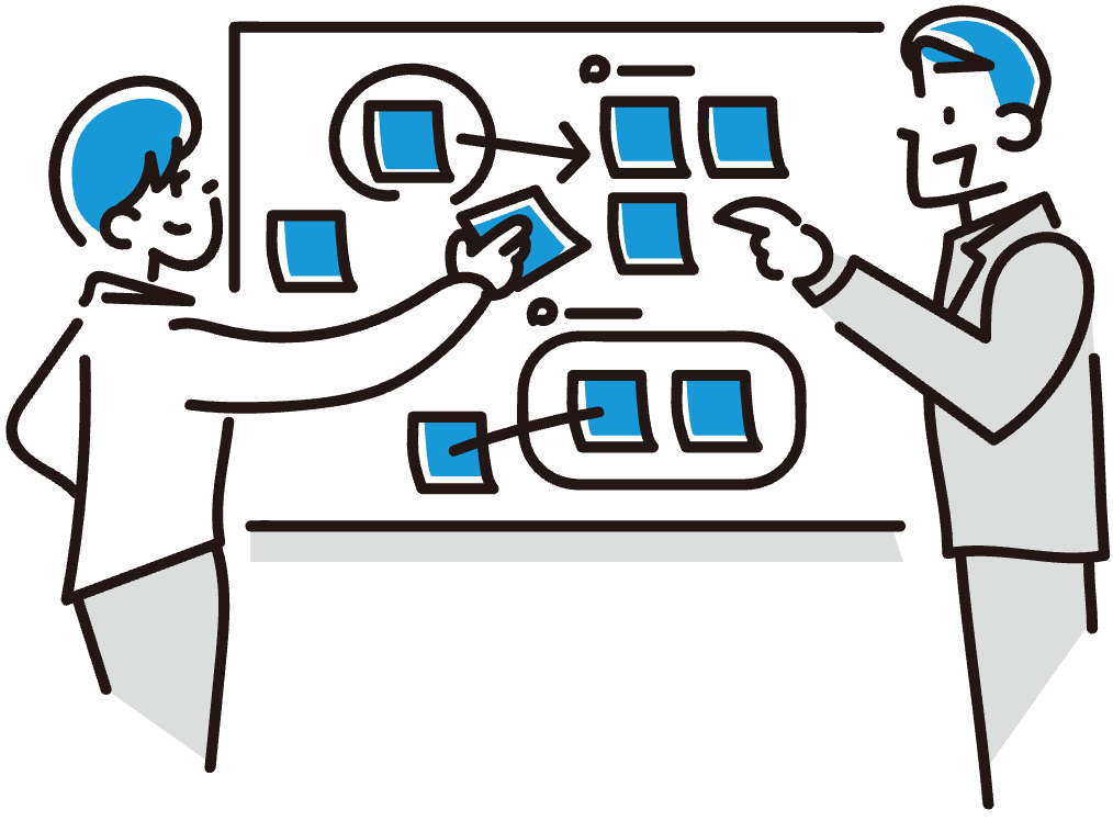 グロースマップでは、ご担当者様と一緒に研修効果を言語化する定期面談を行います。現場の変化に合わせて次の打ち手を考え続けることで、研修を一過性のものにすることを防ぎます。